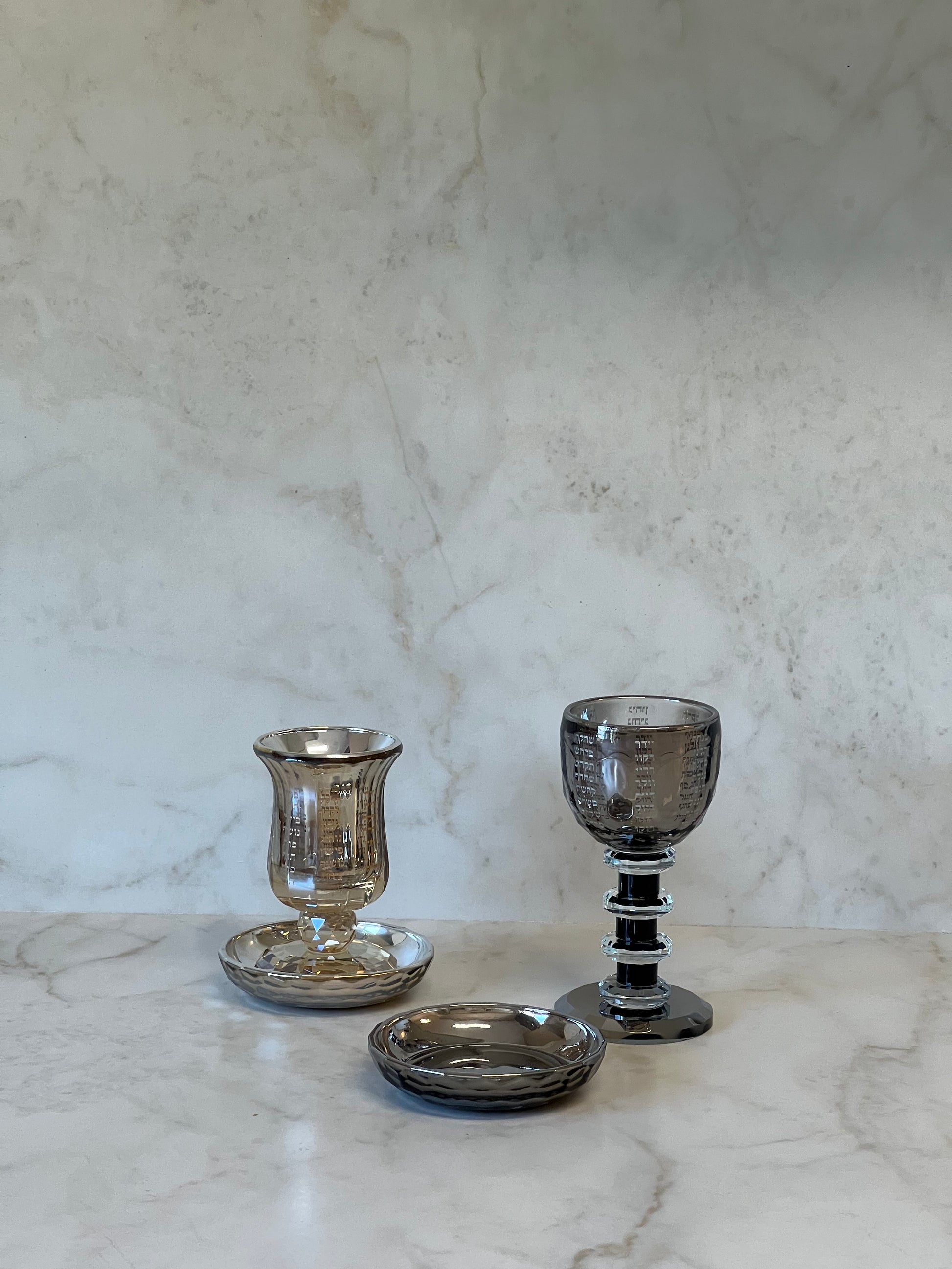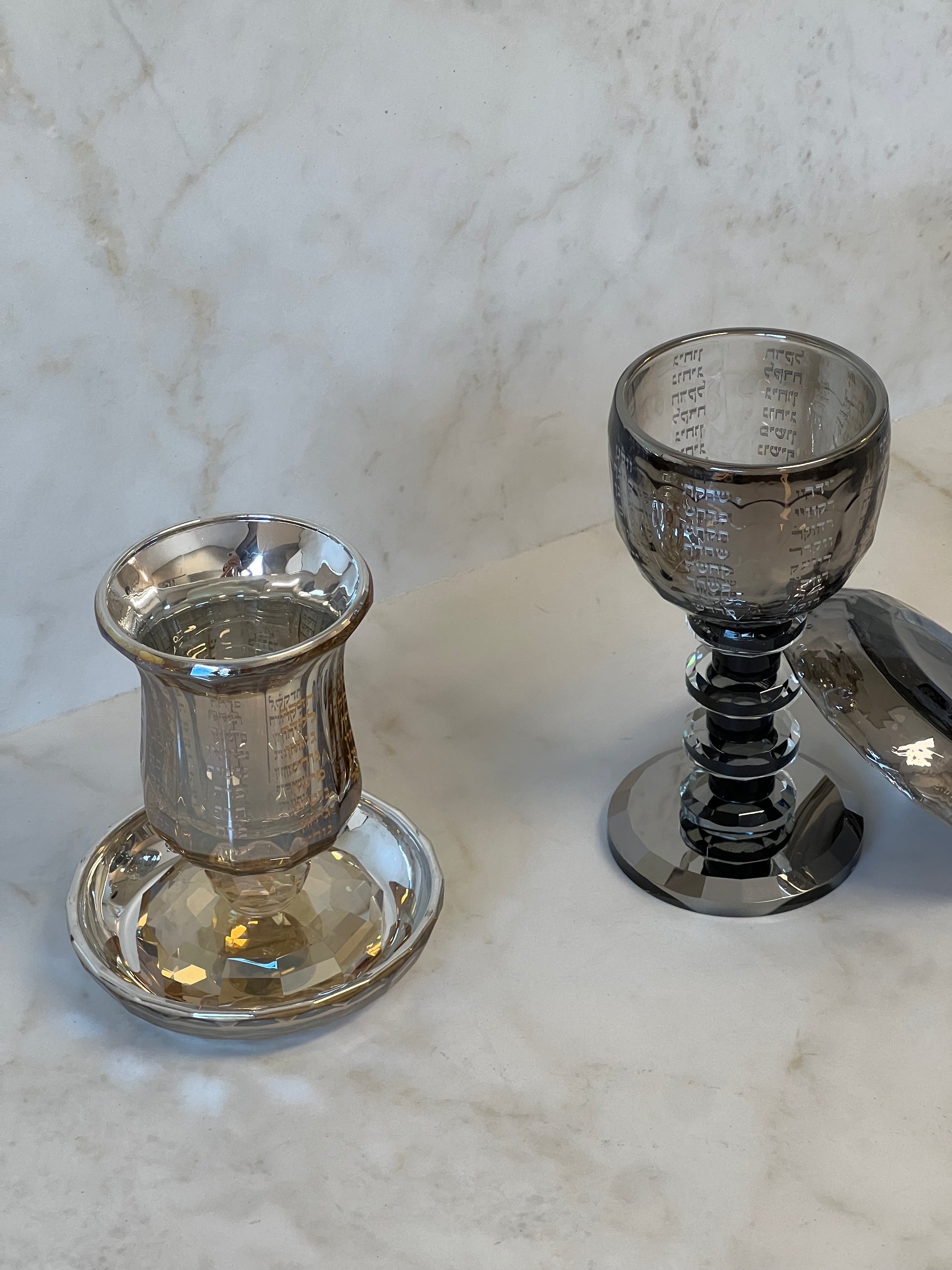 גביע קריסטל גבוה משולב צבע שחור הטבעות עדינות. מתאימה לקידוש או הבדלה