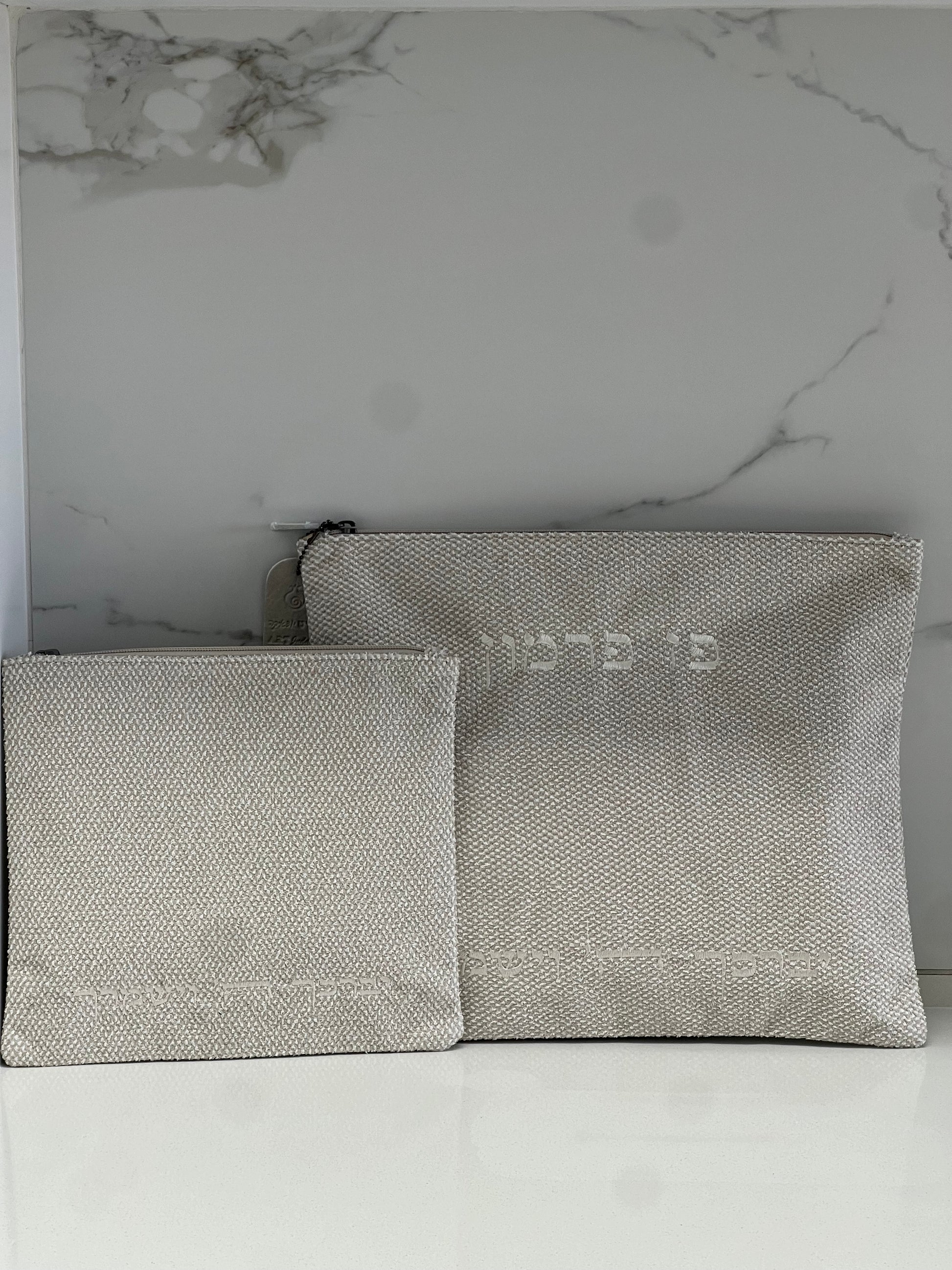 סט כיסוי טלית ותפילין פשתן מדויק! בצבע בז' בהיר