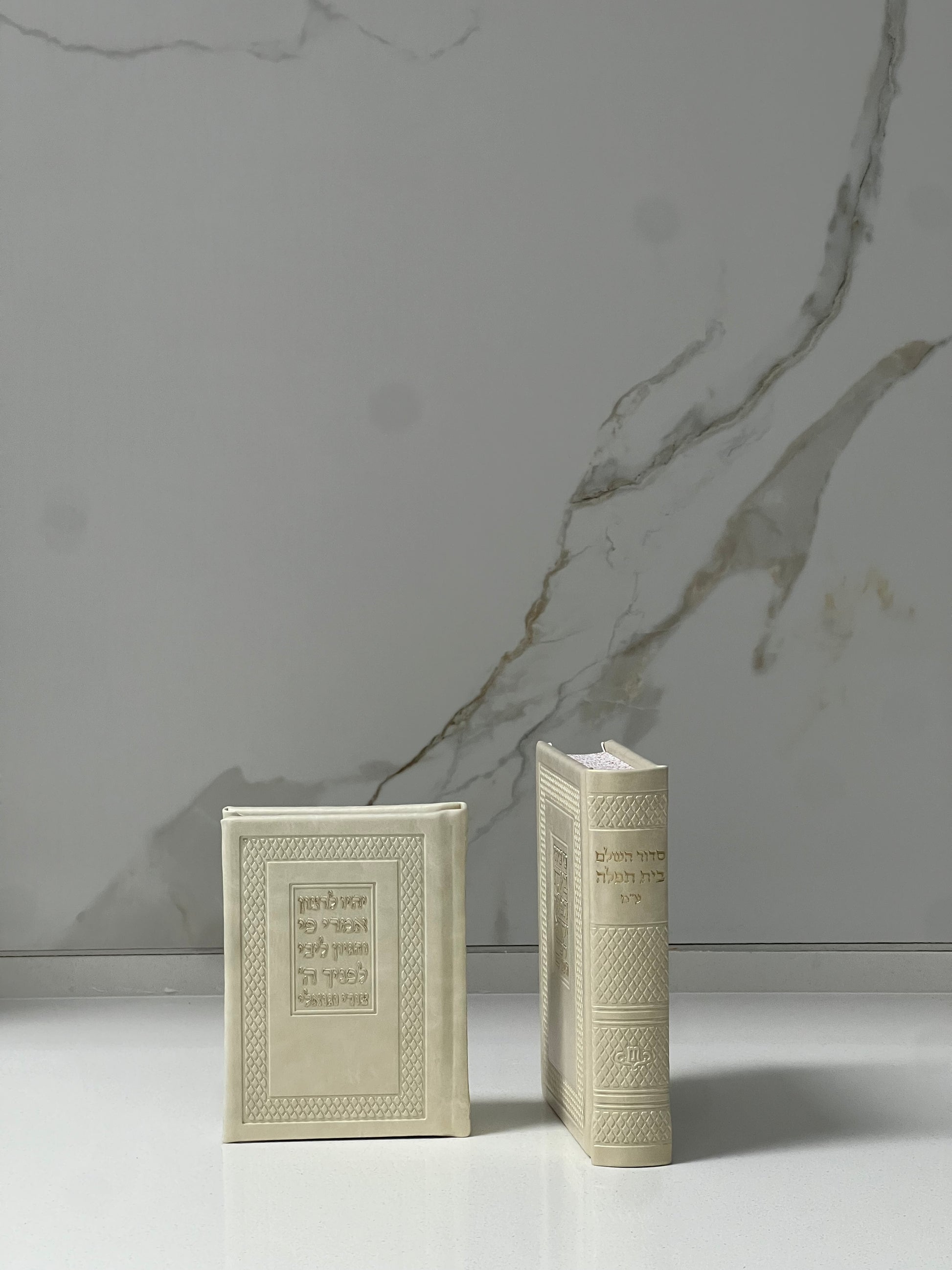 סט בז׳ מהודר ומדויק כרוך בכריכה מהודרת מחומר דמוי עור
