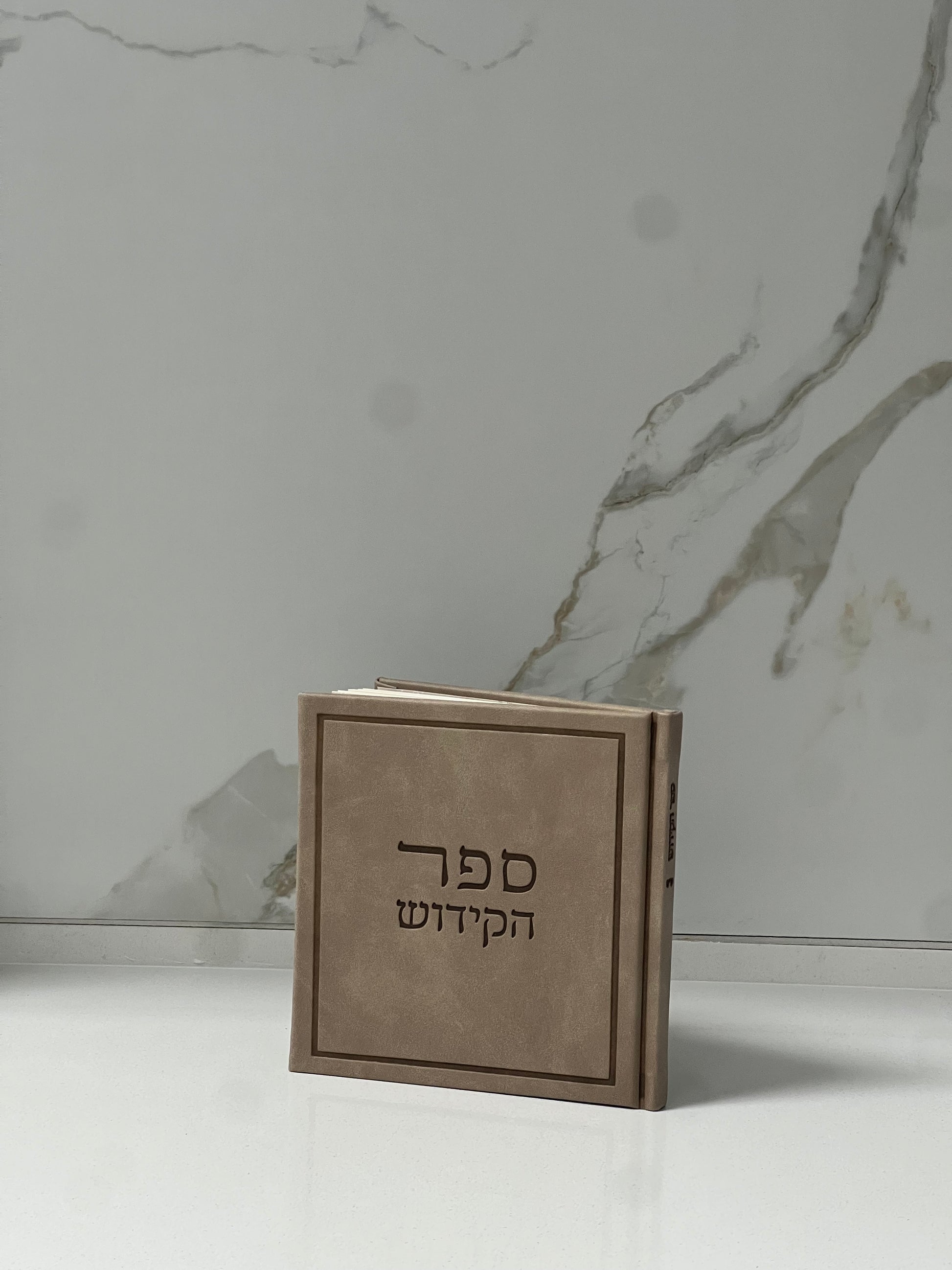 ספר הקידוש השלם בנוסח ספרד, בתוספת זמירות לשבת. עיצוב יוקרתי בגודל 15/15, מרקם משי נעים במיוחד