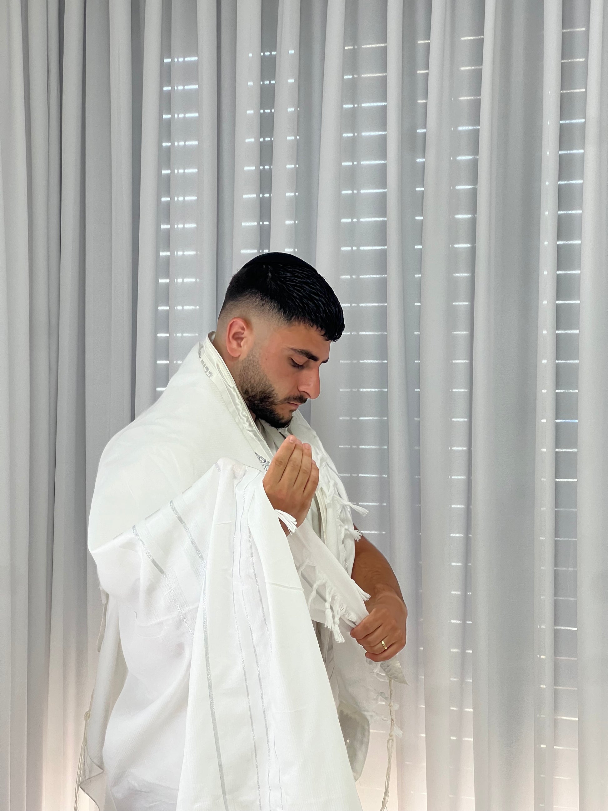 טלית חתנים גודל 60 - 185X140 ס״מ פסים כסף מעוטרת