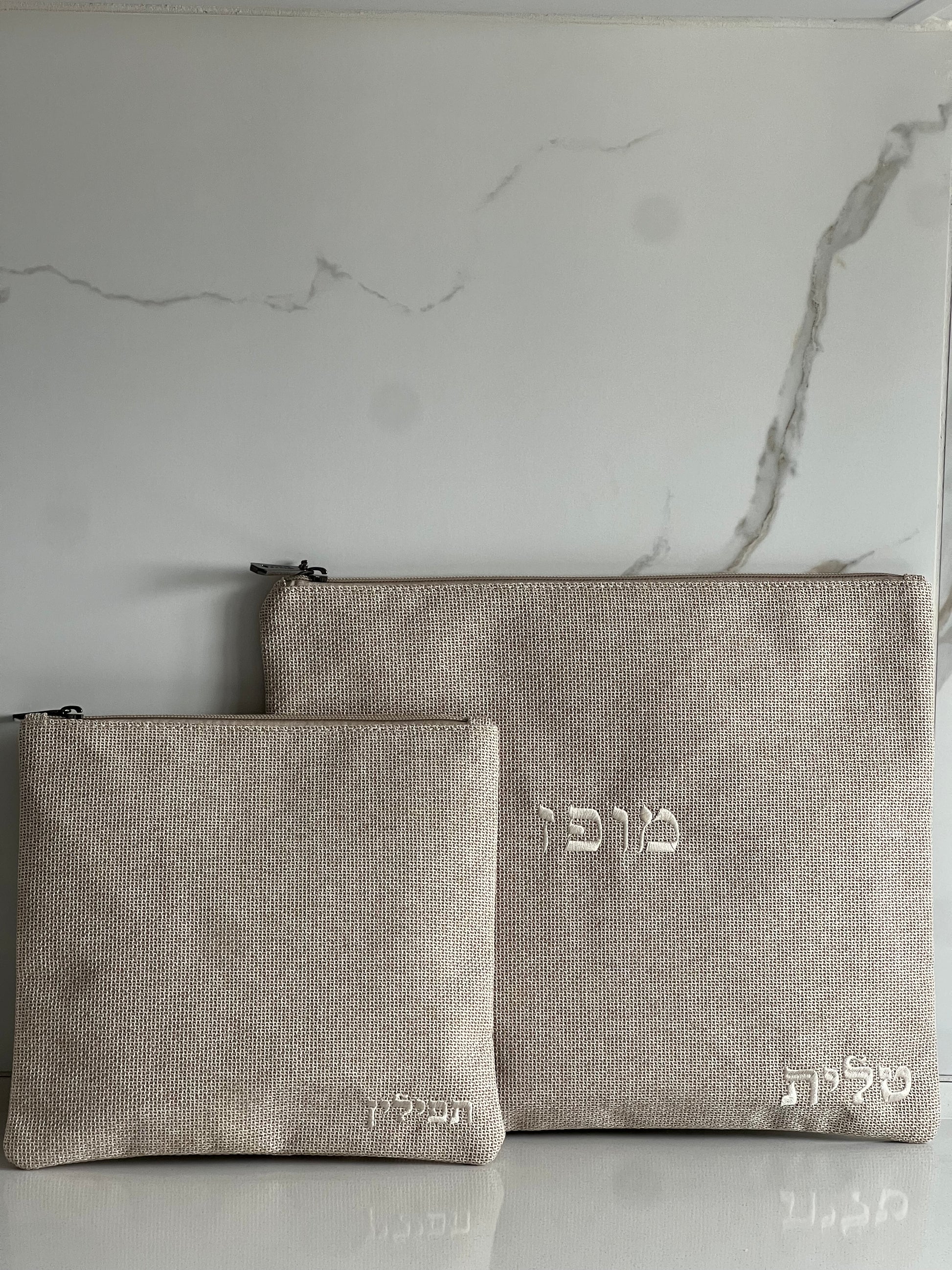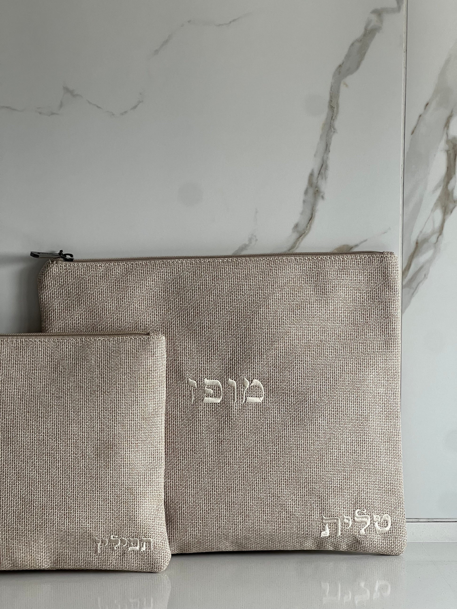 סט כיסוי טלית ותפילין מפשתן מושלם בצבע בז׳