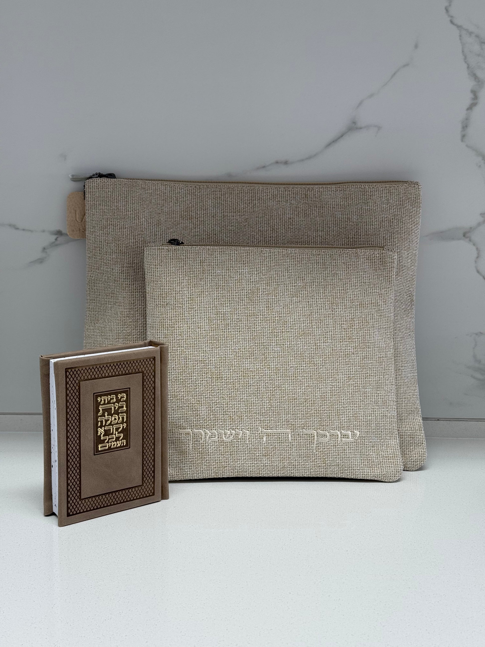 סט כיסוי טלית ותפילין מפשתן מושלם בצבע בז׳