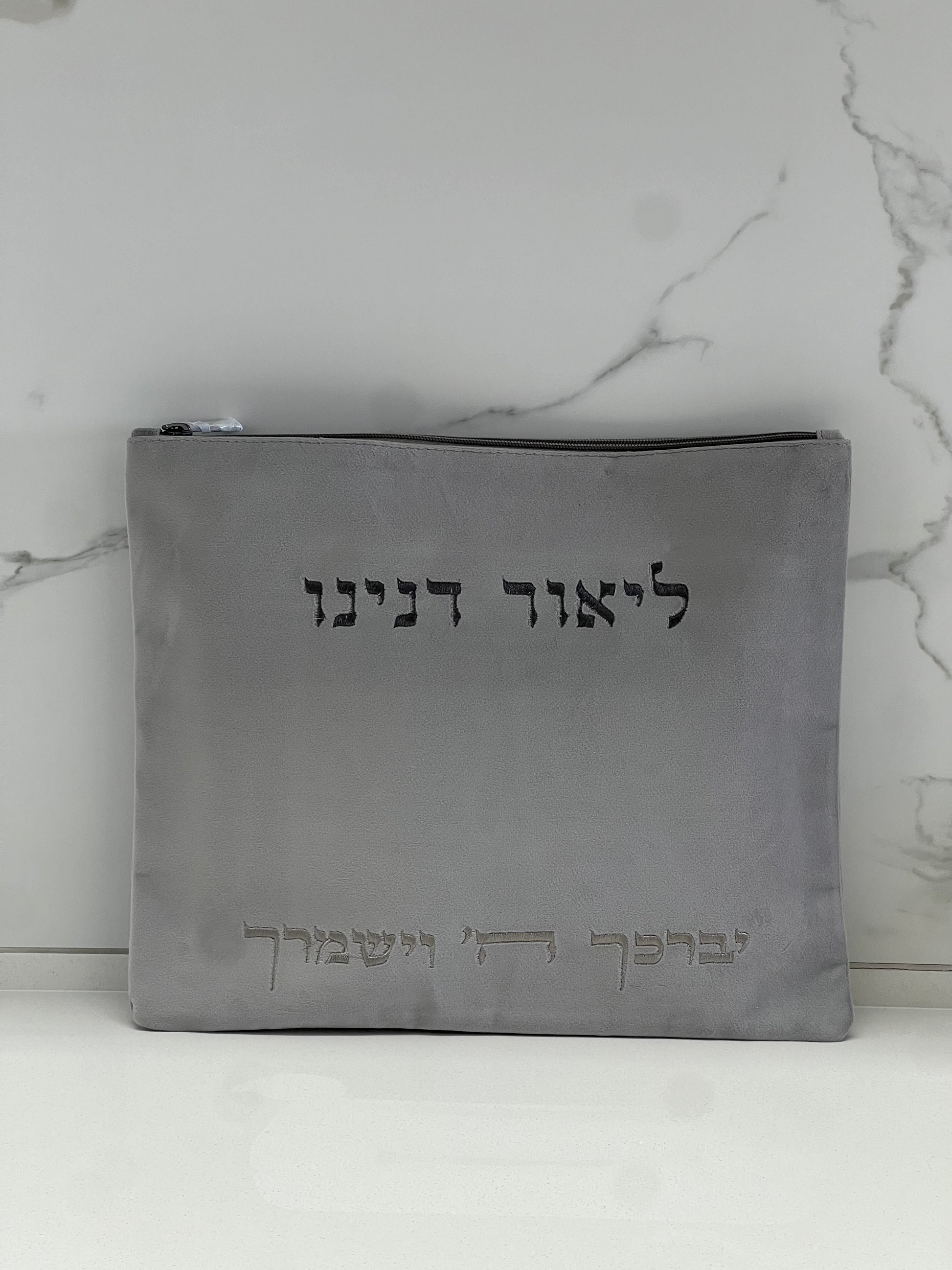 סט כיסוי טלית ותפילין קטיפה מדויק! בצבע אפור בהיר